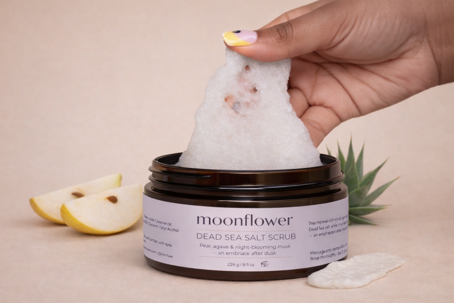 Our Dead Sea salt scrubs gently polish away dryness with mineral-rich salt...