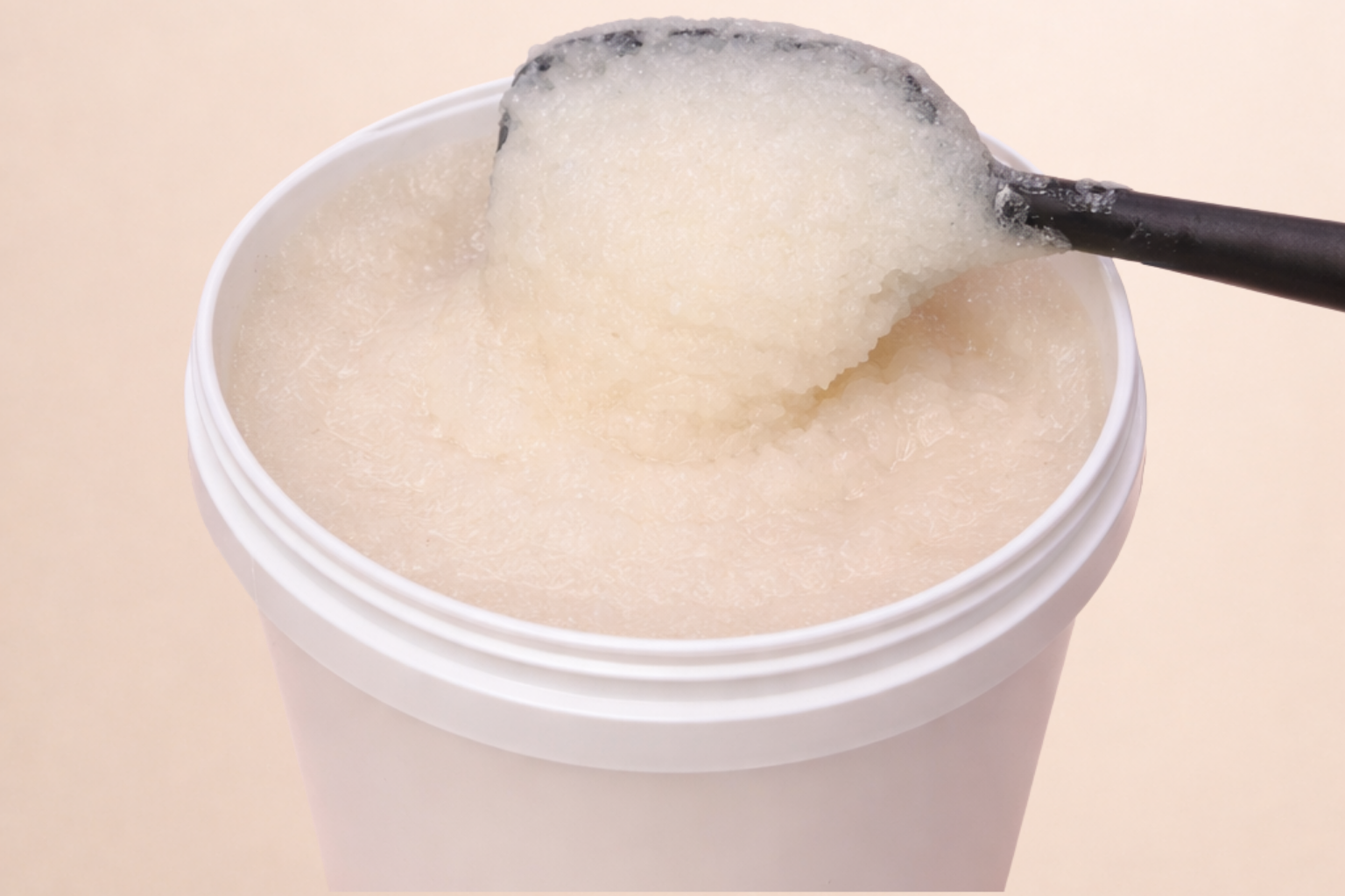 Wholesale scrubs are provided in bulk containers without retail packaging, giving you the flexibility to package the product in your own jars or containers.